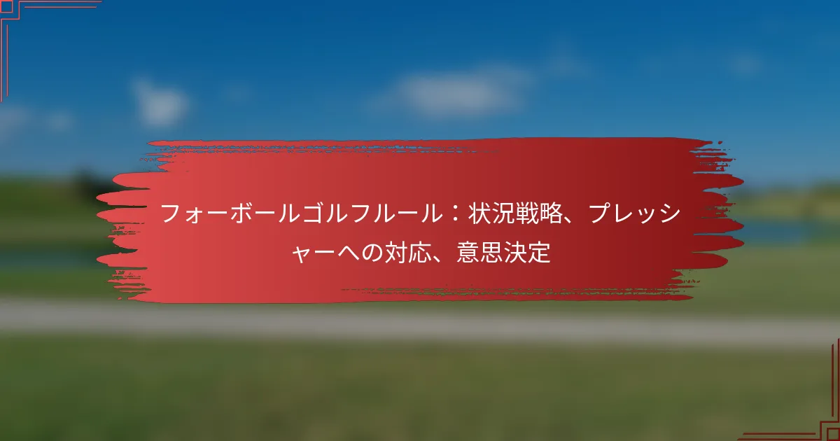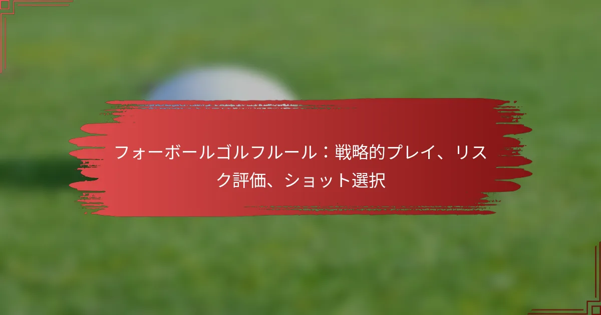 フォーボールゴルフは、2人のプレイヤーからなる2つのチームが競い合う魅力的なフォーマットで、各プレイヤーが自分のボールをプレイし、各ホールでチームのベストスコアを使用します。このダイナミックなマッチプレイは、プレイヤーが自分のパフォーマンスと相手のパフォーマンスを評価し、試合の結果に大きな影響を与える戦略的な対応を可能にすることで、ゲーム内の調整を促します。 フォーボールゴルフの基本ルールは何ですか? フォーボールゴルフは、2人のプレイヤーからなる2つのチームが互いに競い合うフォーマットで、各プレイヤーが自分のボールをプレイします。各ホールでのチームのベストスコアがそのホールの勝者を決定するため、戦略的でダイナミックなマッチプレイの形式となっています。 フォーボールフォーマットの概要 フォーボールでは、各プレイヤーがラウンドを通じて自分のボールをプレイし、2人のチームメイトのうち低いスコアが各ホールに記録されます。このフォーマットは、プレイヤーが互いにサポートしながらも個々に競争することを促進し、チームワークと戦略を奨励します。カジュアルな設定やトーナメントを含む競技的な設定の両方で一般的にプレイされます。 フォーボールフォーマットはマッチプレイまたはストロークプレイで行うことができます。マッチプレイでは、ホールでの最低スコアを持つチームがそのホールを勝ち取り、ストロークプレイでは、ラウンドの最後に合計スコアが集計されます。このフォーマットを理解することで、プレイヤーは戦略を適応させることができます。 フォーボールプレイにおけるチームダイナミクス フォーボールゴルフでは、チームダイナミクスが重要であり、プレイヤーは効果的にコミュニケーションを取り、協力する必要があります。チームメイトは、現在のスコアに基づいて攻撃的にプレイするか保守的にプレイするかなど、各ホールの戦略について話し合うことができます。この協力は、より良い意思決定とパフォーマンスの向上につながります。 さらに、プレイヤーは互いの強みと弱みを把握しておくべきです。たとえば、あるプレイヤーが特にロングドライブに優れている場合、長いホールではそのプレイヤーがリードを取り、もう一方のプレイヤーはパッティングに集中することができます。この補完的なアプローチは、全体のチームスコアを向上させることができます。 フォーボールゴルフのスコアリングシステム フォーボールのスコアリングシステムは簡単です:各ホールでのチームのベストスコアが記録されます。プレイヤーAが4をスコアし、プレイヤーBが5をスコアした場合、そのホールのチームスコアは4になります。このシステムにより、両方のプレイヤーがチームの成功に貢献できるため、個々に良いプレイをすることが重要です。 全体のスコアに関しては、チームはラウンドを通じて最も多くのホールを勝ち取ることを目指します。試合は、残りのホール数よりも多くのホールでリードしているチームが勝ちます。このスコアリングシステムは競争的な雰囲気を生み出し、プレイヤーは各ホールで相手を上回ろうと努力します。 フォーボールにおけるマッチプレイとストロークプレイの違い フォーボールでは、マッチプレイとストロークプレイは異なる体験を提供します。マッチプレイは個々のホールを勝ち取ることに焦点を当てており、プレイヤーはホールごとに相手を打ち負かす必要があるため、より攻撃的な戦略を取ることができます。一方、ストロークプレイでは、プレイヤーはラウンド全体の合計ストロークを最小限に抑える必要があり、一貫したパフォーマンスを奨励します。 マッチプレイとストロークプレイの選択は、チームダイナミクスや戦略に影響を与える可能性があります。たとえば、マッチプレイでは、プレイヤーがホールを勝ち取るためにリスクを取ることがある一方、ストロークプレイでは、高いスコアを避けるためにより安全なアプローチを選ぶことがあります。これらの違いを理解することで、チームは試合に効果的に備えることができます。 一般的なペナルティと違反 フォーボールゴルフのプレイヤーは、標準的なゴルフルールを遵守する必要があり、ボールをアウトオブバウンズに打ったり、不適切なドロップを取ったりするなどの違反に対して一般的なペナルティが発生することがあります。これらのペナルティはゲームの結果に大きな影響を与える可能性があるため、プレイヤーは不必要なストロークを避けるためにルールに精通しておくべきです。 さらに、プレイヤーはプレイのペースに注意を払う必要があります。遅いプレイは競技的な設定でペナルティにつながる可能性があります。チームはコミュニケーションを取り、ゲームを進めることで良いリズムを維持し、割り当てられた時間内にラウンドを完了できるようにするべきです。 フォーボールマッチ