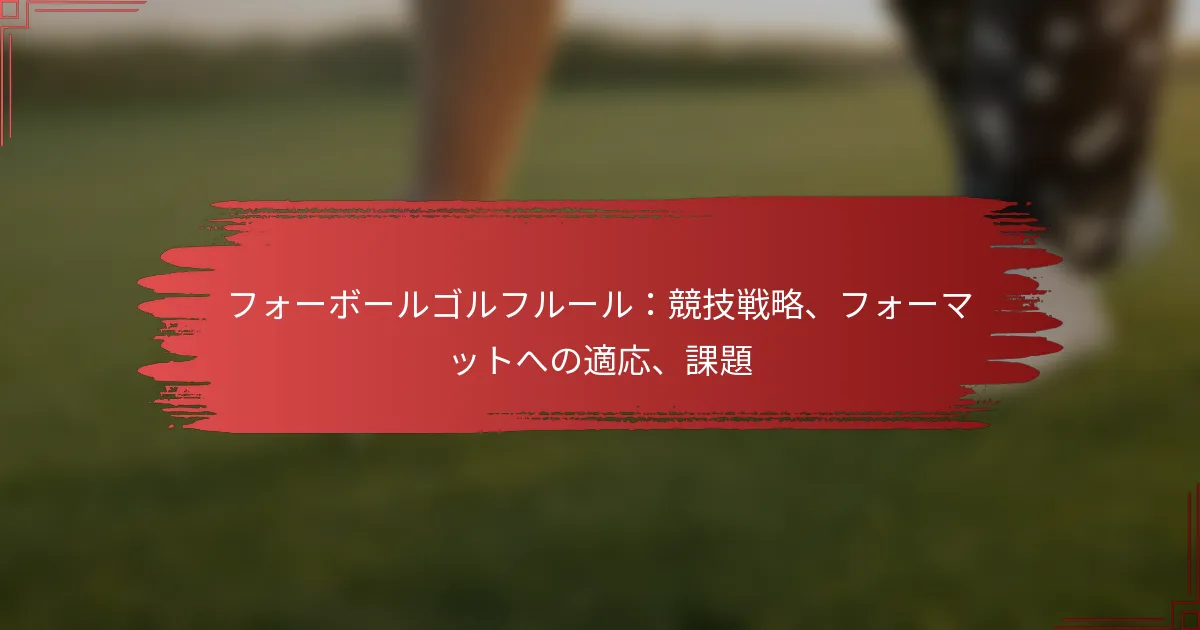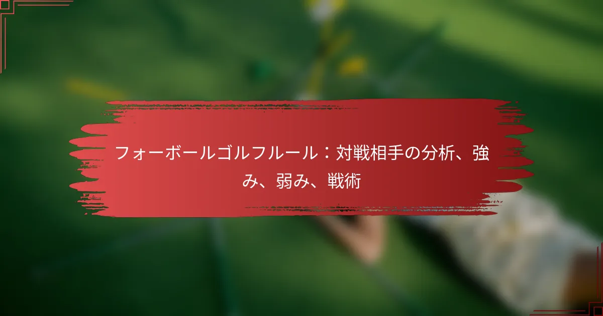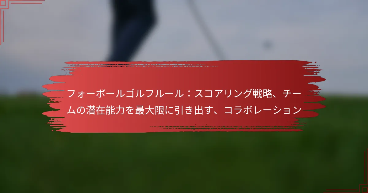 フォーボールゴルフは、2人のプレイヤーが別のペアと競い合うダイナミックなチームフォーマットで、各プレイヤーが各ホールで最高のスコアを達成することを目指します。このフォーマットでの成功は、戦略的なコラボレーションに大きく依存しており、チームは各プレイヤーの強みを活かしながら最高のスコアを選択する必要があります。効果的なコミュニケーションと信頼は、パフォーマンスを最大化し、コースでの全体的な体験を向上させるために不可欠です。 フォーボールゴルフの基本ルールは何ですか? フォーボールゴルフは、2人のプレイヤーが別のペアと競い合うチームフォーマットで、各プレイヤーが自分のボールをプレイします。各ホールでの各チームの最高スコアがチーム全体のスコアにカウントされるため、戦略とコラボレーションが成功のために不可欠です。 フォーボールフォーマットの定義 フォーボールフォーマットは、各2人のプレイヤーからなる2つのチームが参加します。各プレイヤーはラウンドを通じて自分のボールをプレイし、各ホールのチームスコアは4人のプレイヤーの中で最も低いスコアによって決まります。このフォーマットは、チームワークを促進しながら、個々のパフォーマンスを際立たせることができます。 フォーボールは、クラブトーナメントやプロイベントを含むカジュアルな設定と競技的な設定の両方で一般的にプレイされます。1人のプレイヤーがショットの準備をしている間に、もう1人がショットを打つことができるため、よりリラックスしたプレイペースを可能にするため、特に人気があります。 プレイヤーの役割と責任 フォーボールでは、各プレイヤーがチームのパフォーマンスに貢献するための明確な役割を持っています。プレイヤーは効果的にコミュニケーションを取り、自分の強みや弱みに基づいて各ホールへのアプローチを戦略的に考えるべきです。 リードプレイヤー:このプレイヤーはしばしば最初のショットを打ち、ホールのトーンを設定します。自信を持ち、戦略的にプレイする必要があります。 サポートプレイヤー:このプレイヤーは励ましとサポートを提供し、相手のミスを利用したり、パートナーのスコアをバックアップする準備をします。 両方のプレイヤーはコースのコンディションを常に意識し、それに応じて戦略を調整する必要があります。例えば、1人のプレイヤーがパッティングに苦労している場合、もう1人はグリーンへのアプローチをより良くすることに集中するかもしれません。 スコアリングシステムの説明 フォーボールのスコアリングは簡単です:各ホールでの各チームの最高スコアのみがカウントされます。プレイヤーAが4をスコアし、プレイヤーBが5をスコアした場合、そのホールのチームスコアは4です。このシステムは、プレイヤーが自分の最高のパフォーマンスを目指すことを奨励し、パートナーのスコアも考慮することを促します。 ラウンドの最後に、最も低い合計スコアを持つチームが勝ちます。正確なスコアリングを確保し、必要に応じて戦略の調整を助けるために、ラウンド中に各プレイヤーのスコアを追跡することが重要です。 一般的なペナルティと違反 すべてのゴルフフォーマットと同様に、フォーボールにはプレイヤーが遵守しなければならない特定のルールがあり、違反するとペナルティが科されることがあります。一般的な違反には、順番を守らずにプレイすることが含まれ、ペナルティストロークが発生する可能性があります。また、グリーン上でボールを適切にマークしないことも含まれます。 順番を守らずにプレイ:プレイヤーは最低スコアに基づいて順番を守る必要があります。プレイヤーが順番を守らずにプレイした場合、ペナルティを受ける可能性があります。 不適切なボールマーク:ボールを持ち上げる前にマークしないとペナルティが発生する可能性があります。これは他のプレイヤーのプレイを妨げる可能性があります。 これらのペナルティを理解することは、ゲームの整合性を維持し、プレイヤー間の公正な競争を確保するのに役立ちます。チームは、不要なペナルティを避けるために、開始前にルールを確認することをお勧めします。 フォーボールのシナリオの例 チームAがプレイヤー1とプレイヤー2で構成されているシナリオを考えてみましょう。パー4のホールで、プレイヤー1が3をスコアし、プレイヤー2が5をスコアしました。チームAのそのホールのスコアは3で、チームBに対して強いポジションです。チームBのプレイヤーが4と6をスコアした場合、チームAがそのホールを勝ち取ります。 もう一つの例は戦略に関するものです:プレイヤー1が長いドライブを打つのが得意でパッティングに苦労している場合、プレイヤー2はパットのための良いポジションを確保する責任を担い、プレイヤー1が自分の強みに集中できるようにします。このコラボレーションは、チーム全体のパフォ
