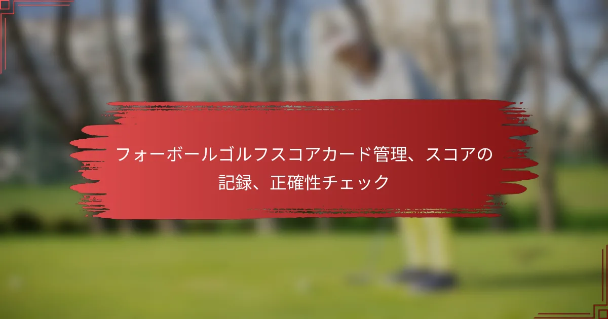 フォーボールゴルフは、2人のプレイヤーが別のペアと競い合うダイナミックなチーム形式で、各プレイヤーが自分のボールをプレイします。スコアカードの効果的な管理は非常に重要で、各プレイヤーのスコアを正確に記録する必要があり、競技の明確さと公正さを確保します。この精度はゴルフ体験を向上させるだけでなく、チームの全体的なパフォーマンスを決定する上でも重要な役割を果たします。 フォーボールゴルフとは何か、どのように機能するのか? フォーボールゴルフは、2人のプレイヤーが別のペアと競い合う人気のあるチーム形式で、各プレイヤーがラウンド中ずっと自分のボールをプレイします。各ホールのチームスコアは、どちらかのプレイヤーが達成した最低スコアであり、成功には戦略と協力が不可欠です。 フォーボールゴルフの定義と概要 フォーボールゴルフは、2人のプレイヤーが別のデュオに対してパートナーシップを形成するチームベースのアプローチが特徴です。各プレイヤーは自分のボールをプレイし、チームのベストスコアが各ホールに記録されます。この形式はチームワークを促進し、個々のパフォーマンスが際立つ一方で、チーム全体の成功にも貢献します。 フォーボールマッチでは、プレイヤーは自分の強みと弱みに基づいて戦略を立てることができ、よりダイナミックなゲームプレイにつながります。この形式はトーナメントやフレンドリーマッチでよく使用され、さまざまなスキルレベルのゴルファーにとって柔軟な選択肢となっています。 フォーボールゴルフマッチを規定するルール フォーボールゴルフのルールは簡潔ですが、公正なプレイには不可欠です。各プレイヤーは自分のボールでホールを完了し、チームスコアは2人のプレイヤーのうちの最低スコアによって決まります。1人のプレイヤーがパーを取り、もう1人がボギーを取った場合、そのホールのチームスコアはパーになります。 プレイヤーは標準のゴルフルールに従い、適切なエチケットを守り、個々のスコアを正確に追跡することを確実にしなければなりません。スコアに不一致が生じると争いの原因となるため、チームメイトとの明確なコミュニケーションを維持することが重要です。 フォーボールゴルフゲームの構造 典型的なフォーボールゴルフゲームは18ホールで構成され、各ホールは従来のゴルフと同様にプレイされます。マッチはストロークプレイとして行うこともでき、総ストローク数がカウントされるか、マッチプレイとして行い、個々のホールを勝つことに焦点を当てます。 チームはスキルレベルに基づいて形成され、競争のバランスを保つことができます。このゲーム構造は、1人のプレイヤーの強いパフォーマンスが他のプレイヤーの弱いプレイを補うことができるため、プレイヤー同士が支え合うことを奨励し、ユニークで魅力的な形式となっています。 フォーボールと他のゴルフ形式の違い フォーボールゴルフは、スコアの記録方法において、フォーサムや個人ストロークプレイなどの他の形式とは異なります。フォーサムでは、プレイヤーは同じボールを交互に打ちますが、フォーボールでは各プレイヤーが独立して自分のボールをプレイします。 スコアリング: フォーボールはチームのベストスコアを使用しますが、フォーサムは両プレイヤーのスコアを組み合わせます。 チームダイナミクス: フォーボールはチームの文脈内での個々のパフォーマンスを強調しますが、フォーサムは交互にショットを打つためにより多くの調整と戦略を必要とします。 ゲームプレイのペース: フォーボールはプレイヤーが同時にプレイできるため、フォーサムよりも速いペースを許すことが多いです。 フォーボールゴルフで使用される一般的な用語 フォーボールゴルフの一般的な用語を理解することで、プレイヤーや観客の体験が向上します。以下は重要な用語です: ベストボール: ホールでどちらかのプレイヤーが達成した最低スコアを指します。 マッチプレイ: 総ストロークではなく、個々のホールを勝つことに焦点を当てたスコア形式です。 ストロークプレイ: ラウンド中にかかった総ストローク数で勝者を決定する形式です。 チームメイト: フォーボール形式で競い合うプレイヤーのパートナーです。 これらの用語に慣れることで、プレイヤーは効果的にコミュニケーションを取り、ゲームをより楽しむことができ、フォーボールゴルフにおける戦略の理解が深まります。 フォーボールゴルフのスコアカードを効果的に管理する方法は? フォーボールゴルフのスコアカードを管理するには、各プレイヤーのスコアを正確に記録し、明確さと整理を確保することが必要です。効果的なスコアカード管理は、全体的なゴルフ体験を向上させ、プレイヤーのパフォーマンスに関する貴重な洞察を提供します。 フォーボールゴルフスコアカードの必須要素 フォーボールゴルフのスコアカードには、プ